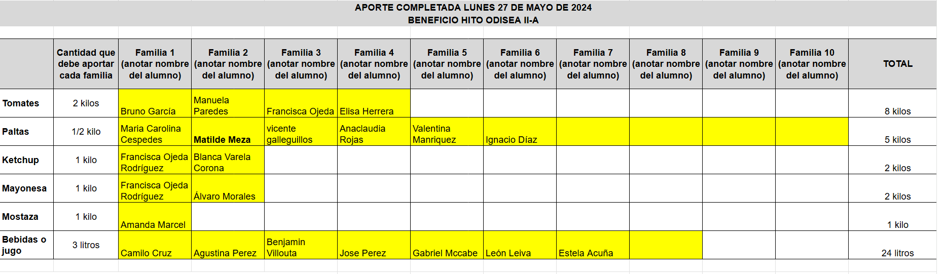 Las empanadas fueron nuevamente encargadas a Ximena Jara, tutora de Ignacio, y a su familia, quienes con mucho cariño y disposición prepararon una gran cantidad de unidades para todo el curso. Cada empanada tuvo un costo de $1.800, y además se solicitó un aporte de $1.000 por familia para costear las bebidas, helados, granadina y vasos necesarios para preparar los “terremotos”.