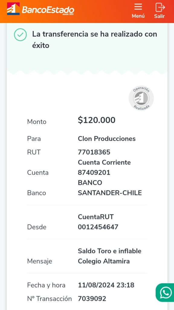 Agradecemos sinceramente a todas las familias que colaboraron con sus depósitos y pagos en efectivo. En total, se reunieron $92.000 mediante transferencias bancarias y $12.800 en pagos en efectivo, lo que permitió cubrir casi la totalidad de los gastos de la actividad.