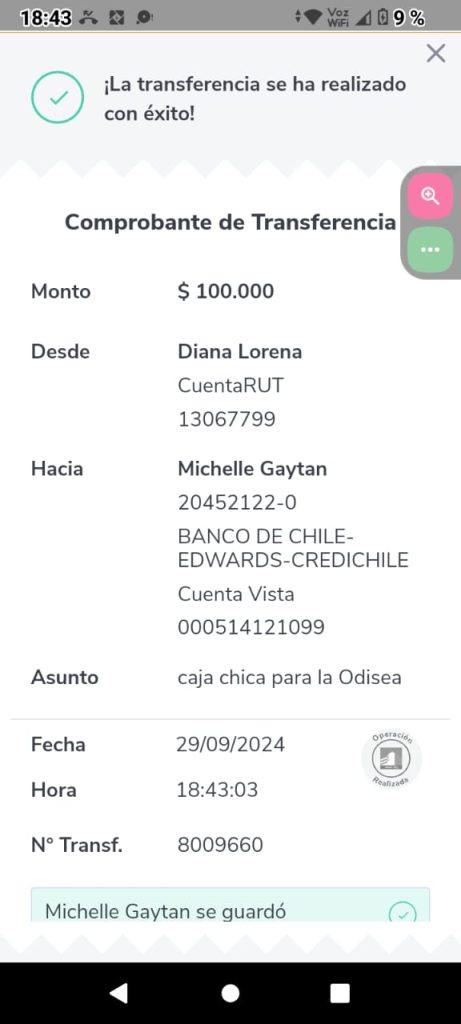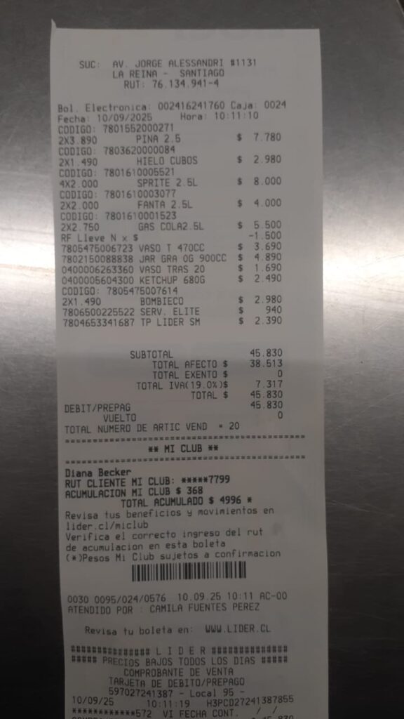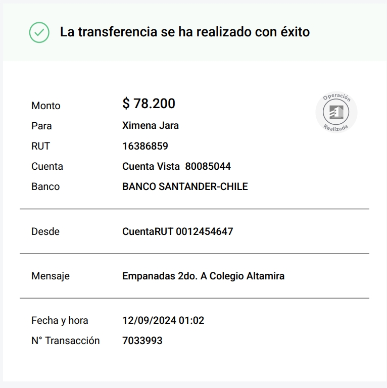 El costo total de las bebidas, helados, granadina y materiales fue de $45.830, y el pago a la familia de Ximena por las empanadas alcanzó $93.600. Como resultado, fue necesario completar una pequeña diferencia con los fondos del curso, asegurando que todos los alumnos pudieran disfrutar de la jornada sin inconvenientes.